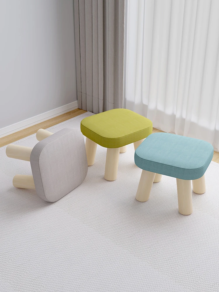高級感溢れる木製ミニスツール - シンプルなデザインで、リビングや玄関にぴったり!靴を履き替えるのに便利な柔らかいファブリック仕様。おしゃれな空間を演出するアイテムです。