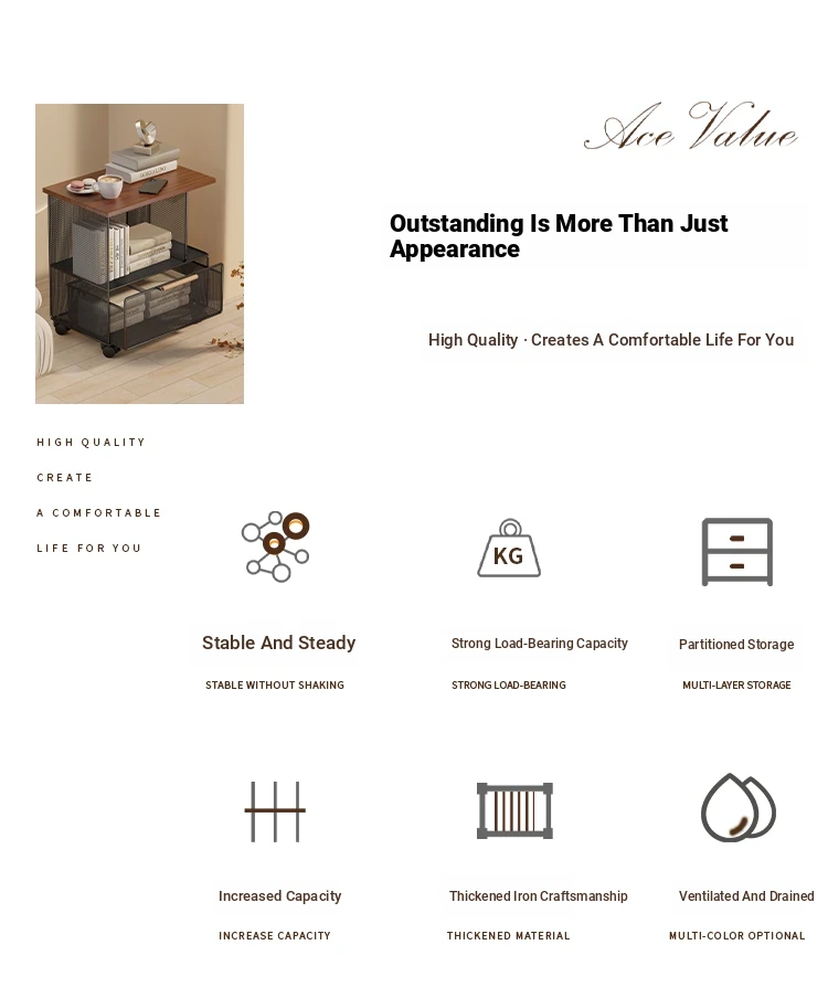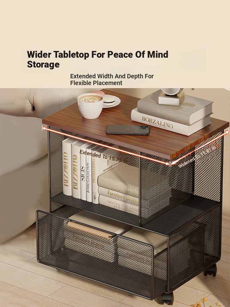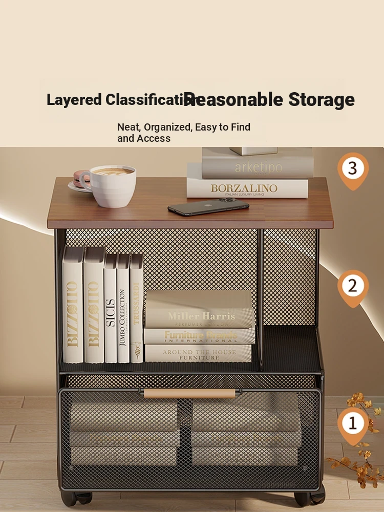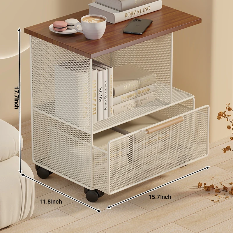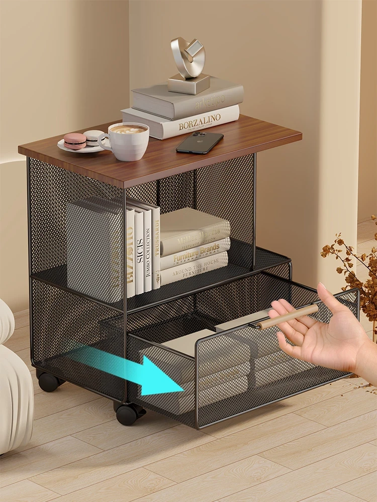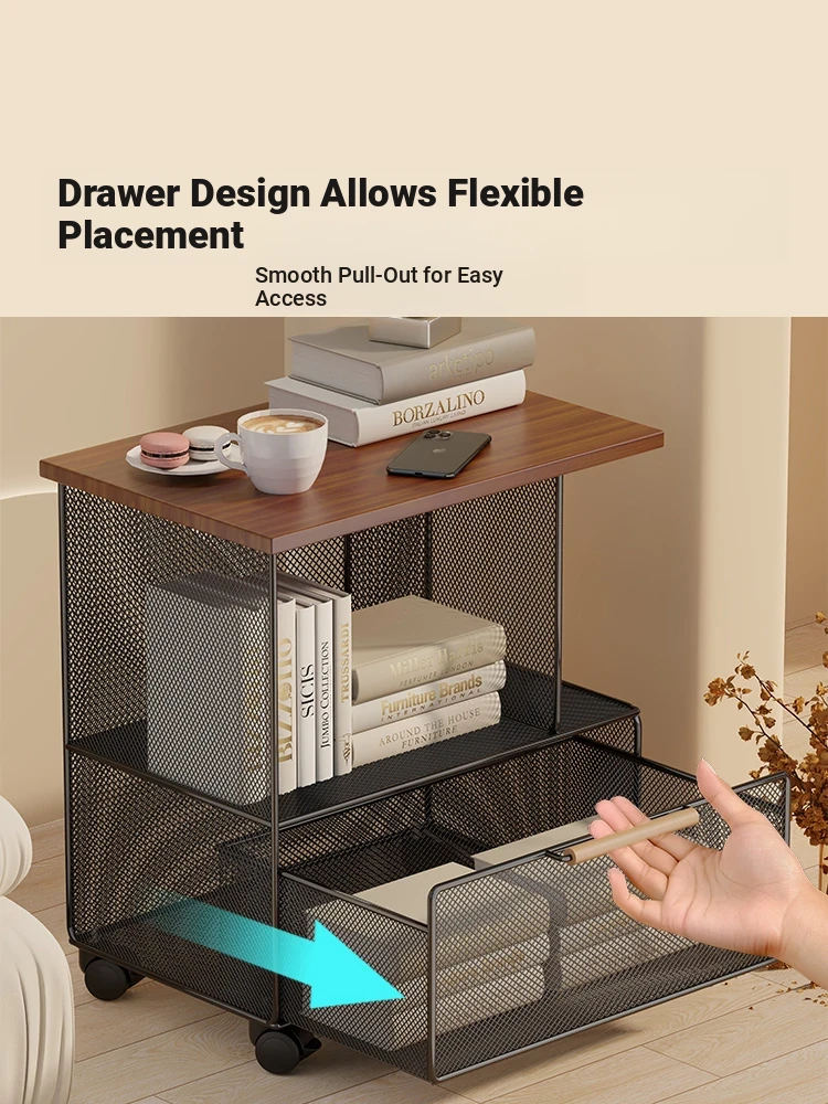 Modern Minimalist Mobile Side Table with Wheels - Creative Small Coffee Table with Drawer for Balcony Tea Time