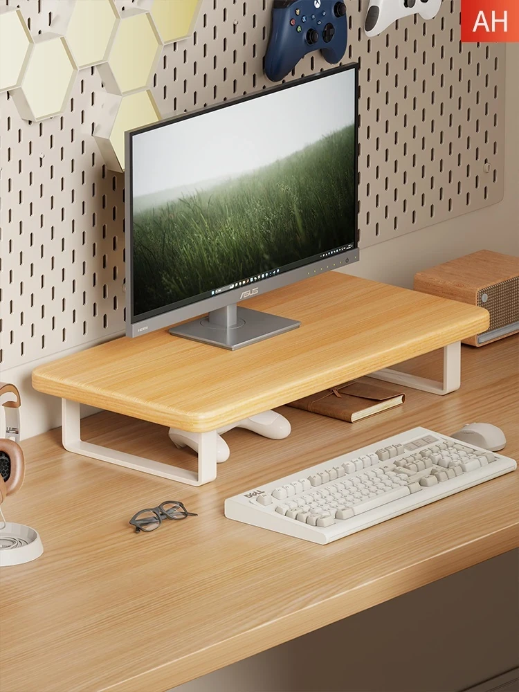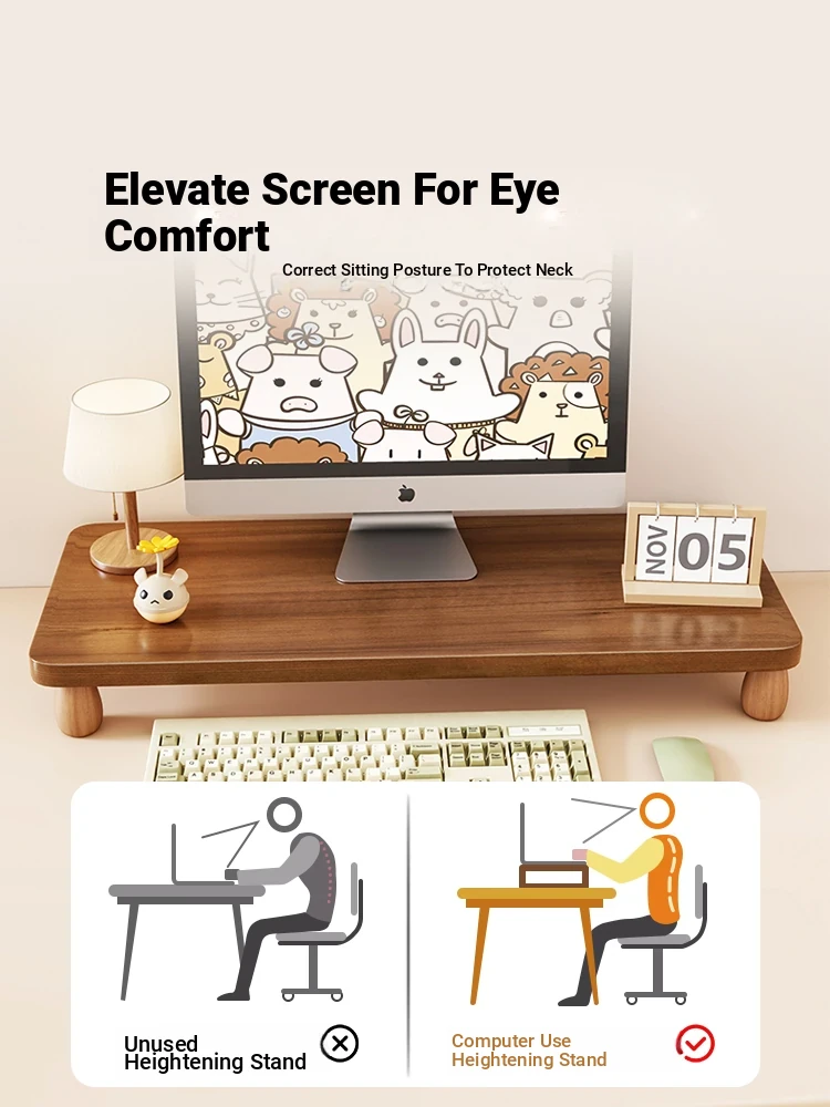 Solid Wood Monitor Stand - Desktop Organizer for Office, Elevate Your Screen, Maximize Space, Stylish and Functional Storage Solution for Your Workspace