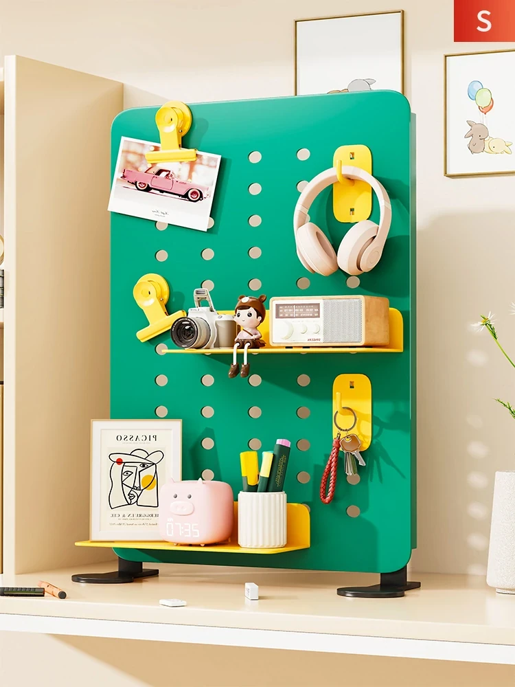 Wall-Mounted Perforated Board Storage Rack - No Drilling Required, Magnetic Organizer for Kids' Desks, Entryway Wall Display Shelf - Perfect for Stylish and Functional Home Organization!