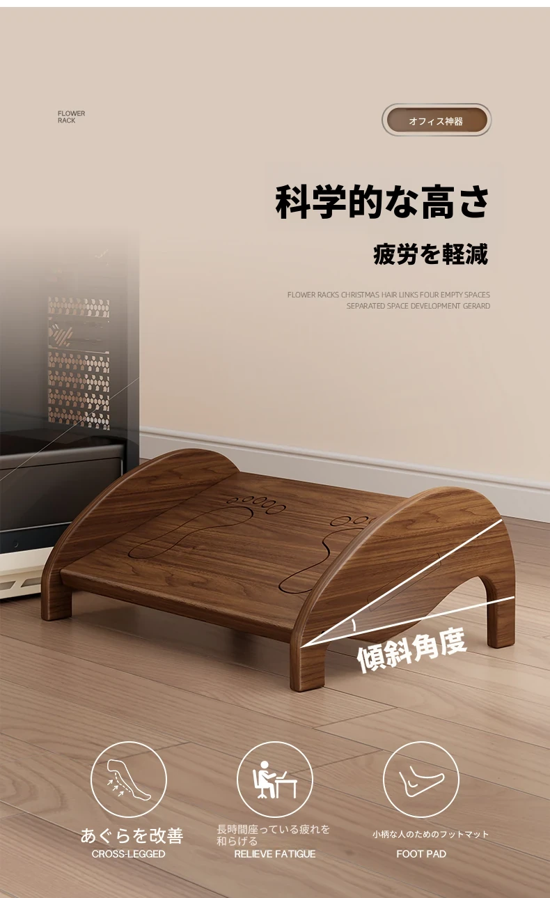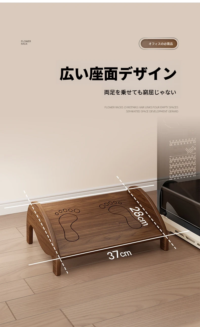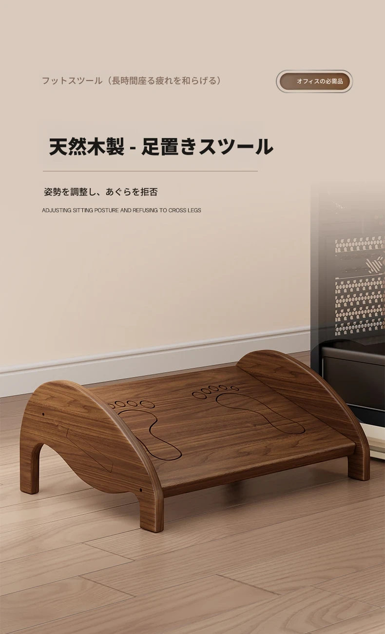 天然木製の足置き台 - オフィスやデスク下での快適さを実現!足を楽にする魔法のアイテム、子供にも最適なデザイン。仕事中の疲れを軽減し、リラックスした姿勢をサポートします!