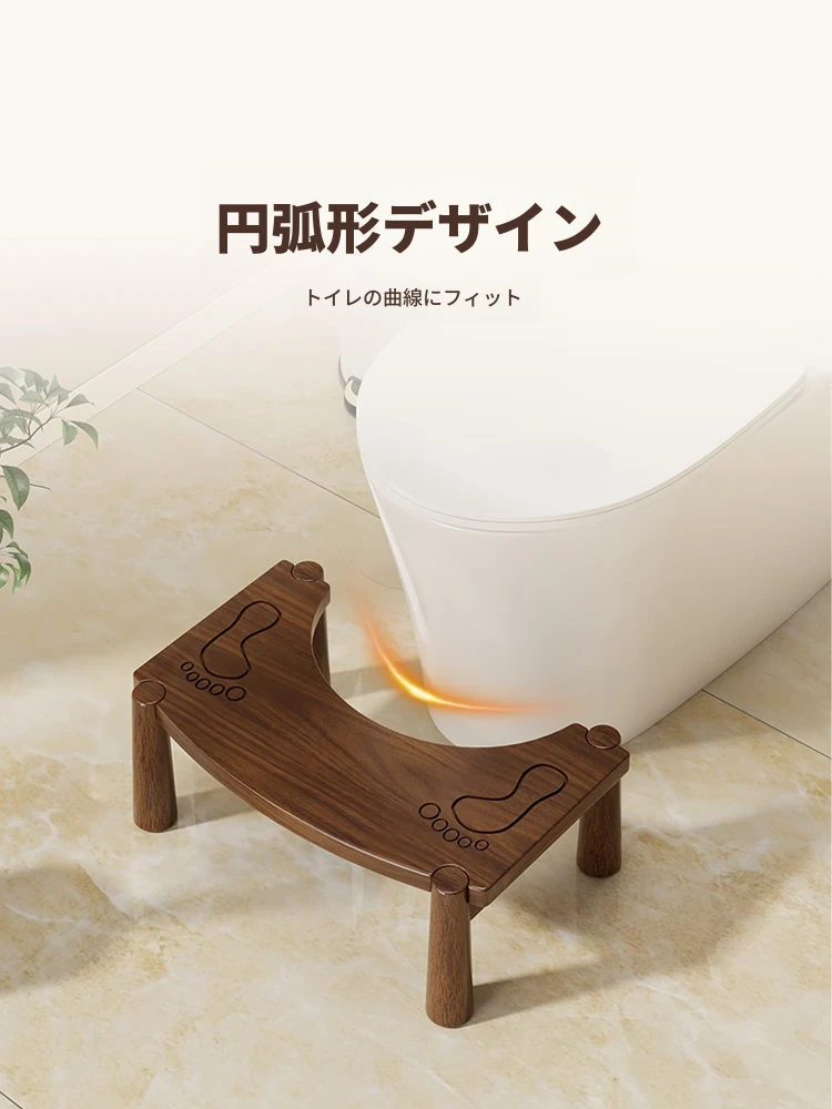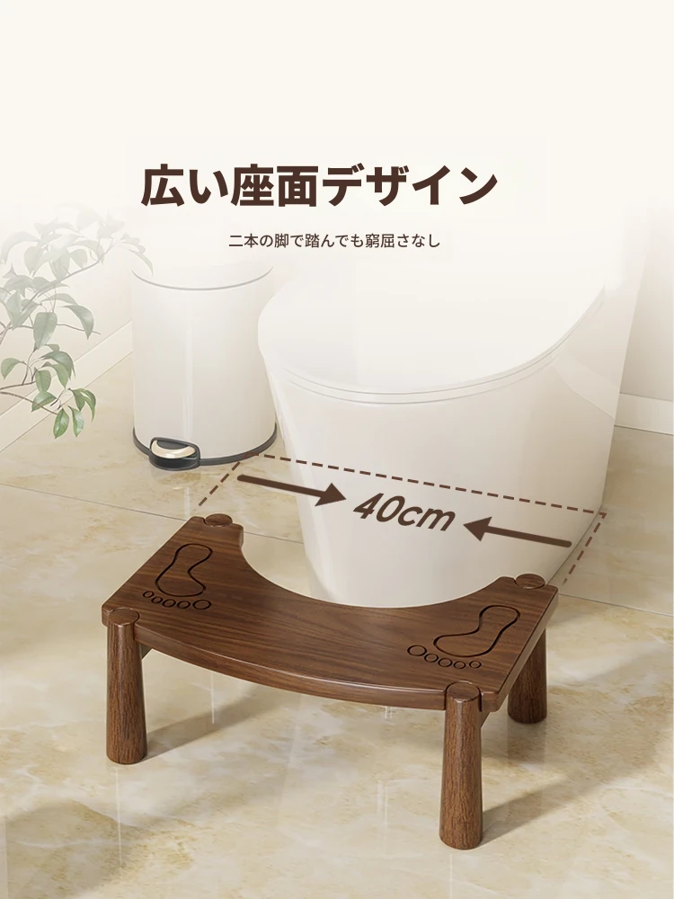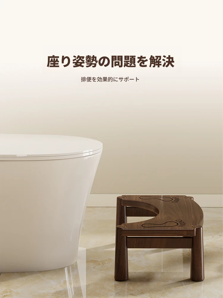 天然木製トイレ用踏み台 - おしゃれで便利なトイレの高さ調整に最適!快適な座り心地を実現し、バスルームのデザインを引き立てます。家庭用にぴったりの使いやすい足置き台です。