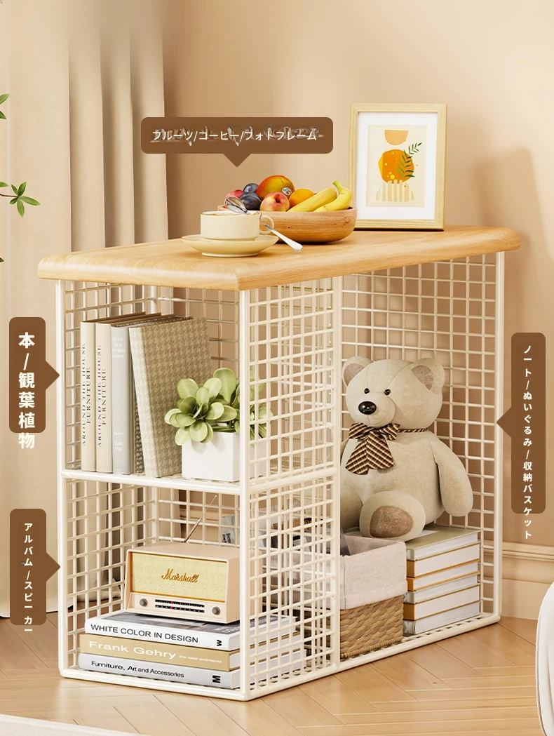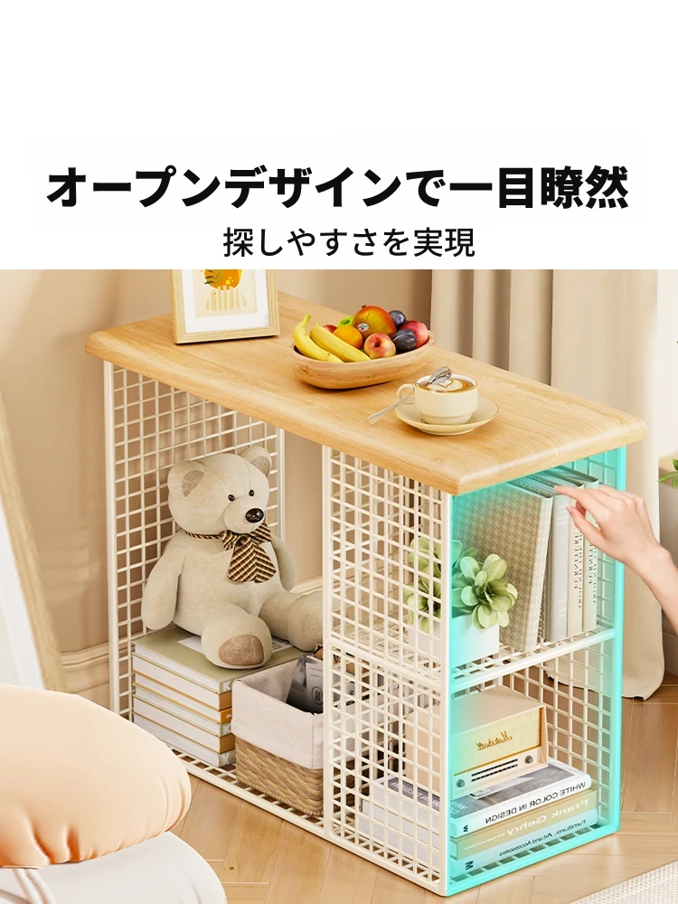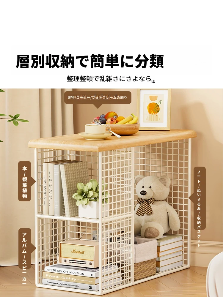 リビングにぴったりの小型テーブル!ソファサイドや寝室のナイトテーブルとしても使える多機能収納ラック。おしゃれなデザインで、インテリアを引き立て、収納スペースを有効活用できます。