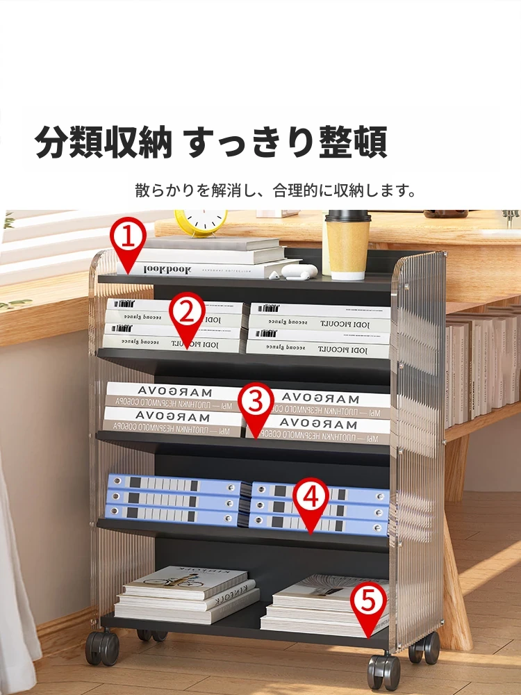 子供のための可動式デスクサイド本棚!おもちゃや本を整理整頓できる収納ラック。キャスター付きで移動もラクラク!小さなスペースにもぴったりな便利な書類ラックです。