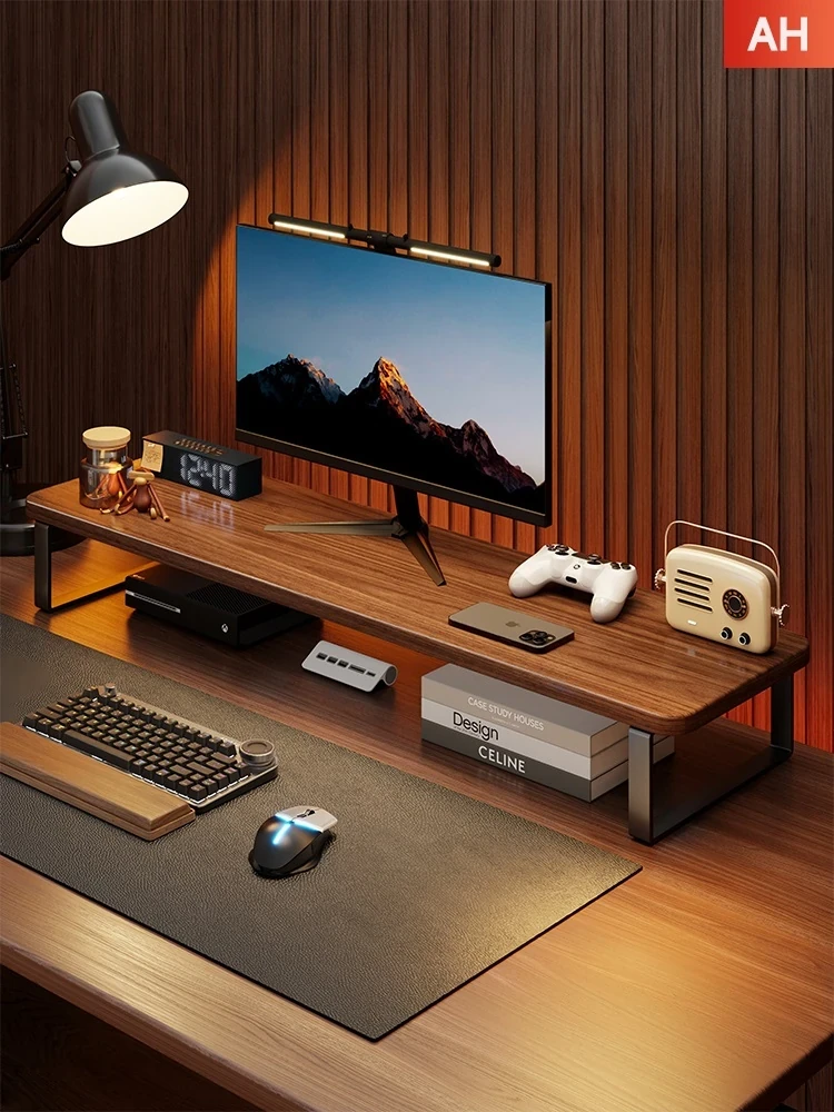 ゲーミングデスク用パソコン昇降スタンド - 天然木製モニター台、ノートパソコン支え、デスク周りをスッキリ整理!快適な作業環境を実現。