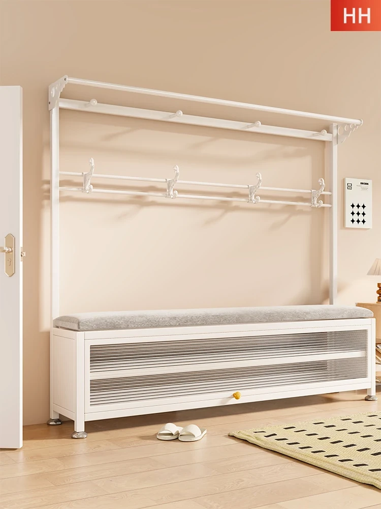 多機能衣類ラック - リビングルームに最適なスタンド式コートハンガー!玄関や寝室で大活躍!衣服をかけたり、靴を履くためのベンチとしても使える便利なアイテムです。おしゃれで実用的な収納ソリューションを手に入れましょう!