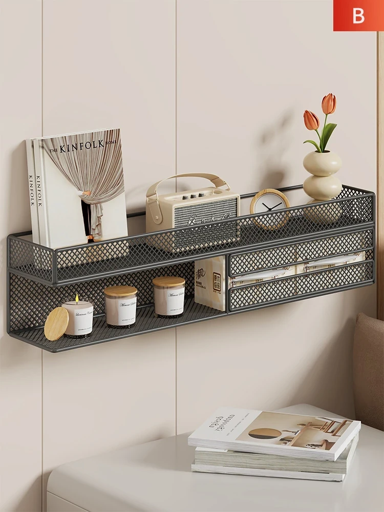 壁掛け式の穴なし収納ラック|リビングや寝室に最適な多機能シェルフ|おしゃれなデザインでお部屋をスッキリ整理!