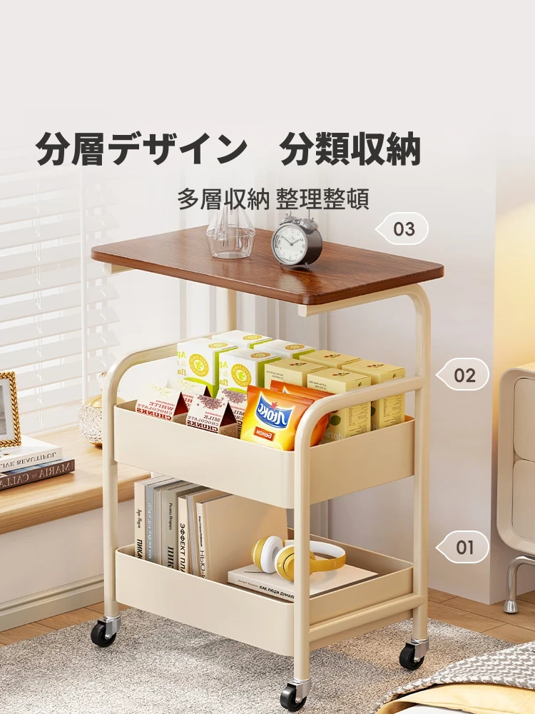 移動式おしゃれ収納ラック - 寝室やリビングに最適!スナックや本をすっきり整理。ソファ脇にもぴったりの便利なキャスター付き!あなたの生活空間をスタイリッシュに演出します。