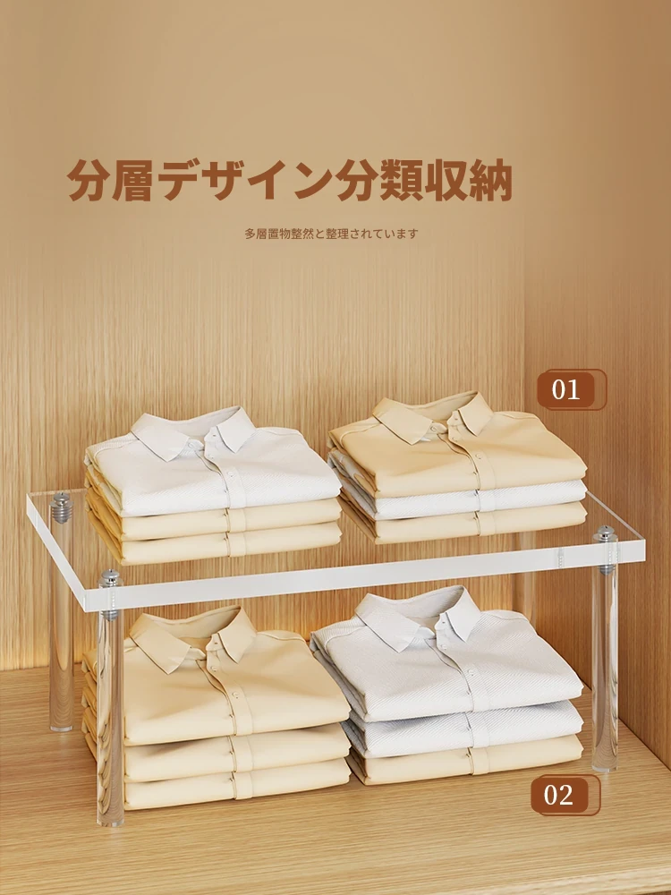 透明アクリル製クローゼット用仕切り棚 - 衣類収納に最適な分層ラック!靴箱や衣類収納もスッキリ整理できる便利な収納アイテム。クローゼットを有効活用して、おしゃれで機能的な空間を手に入れましょう!